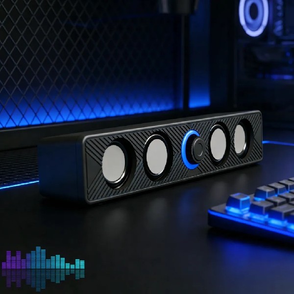Su diseño compacto permite ubicarla fácilmente en escritorios o espacios reducidos sin sacrificar calidad de sonido. Los agudos son claros y los graves más profundos, brindando una experiencia ideal para música, películas, videos y juegos.